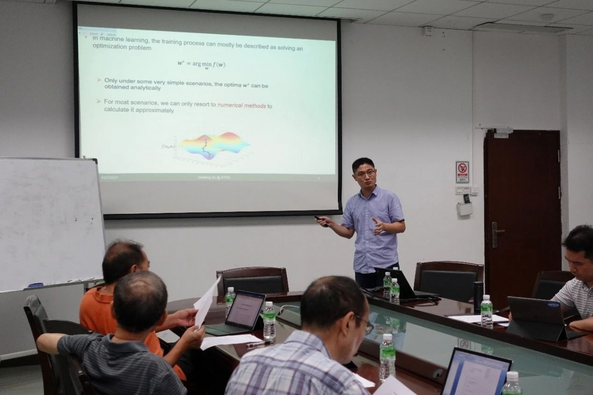 随后,6位参赛教师分别以《机器学习与数据挖掘》(苏勤亮)、《离散数学基础》(周晓聪)、《人工智能原理》(吴贺俊)、《人工智能》(饶洋辉)、《算法设计与分析》(张子臻)、《操作系统原理》(陈鹏飞)为题,依次进行模拟课堂讲课。各位参赛教师在赛前认真准备、积极备课、精心构思,在课堂上纷纷展现出了自己的风采。各专家评委从教学设计、教学方法、教学内容等方面针对性地提出了指导意见。参赛教师纷纷表示受益匪浅,将在以后的教学中努力改进,不断提高自己的教学水平。经过评委严格公正的评定,推荐吴贺俊副教授、周晓聪副教授、陈鹏飞副教授代表学院参加学校复赛。